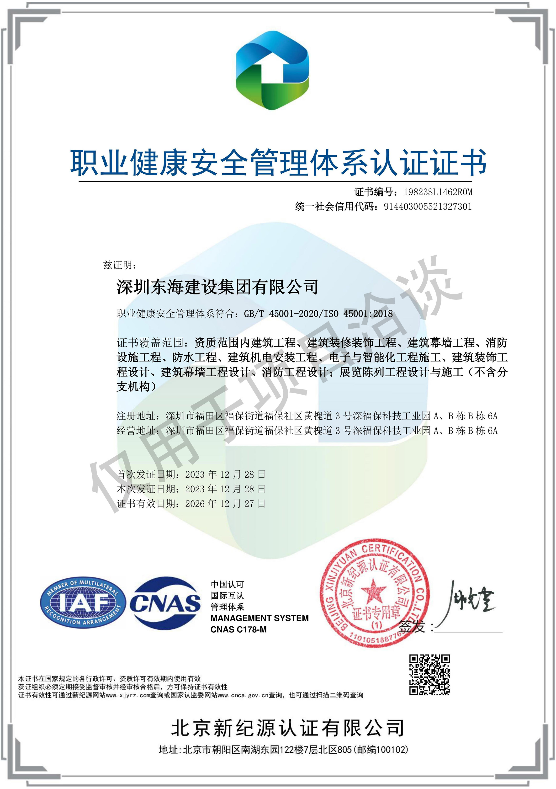 職業健康安全管理體系認證